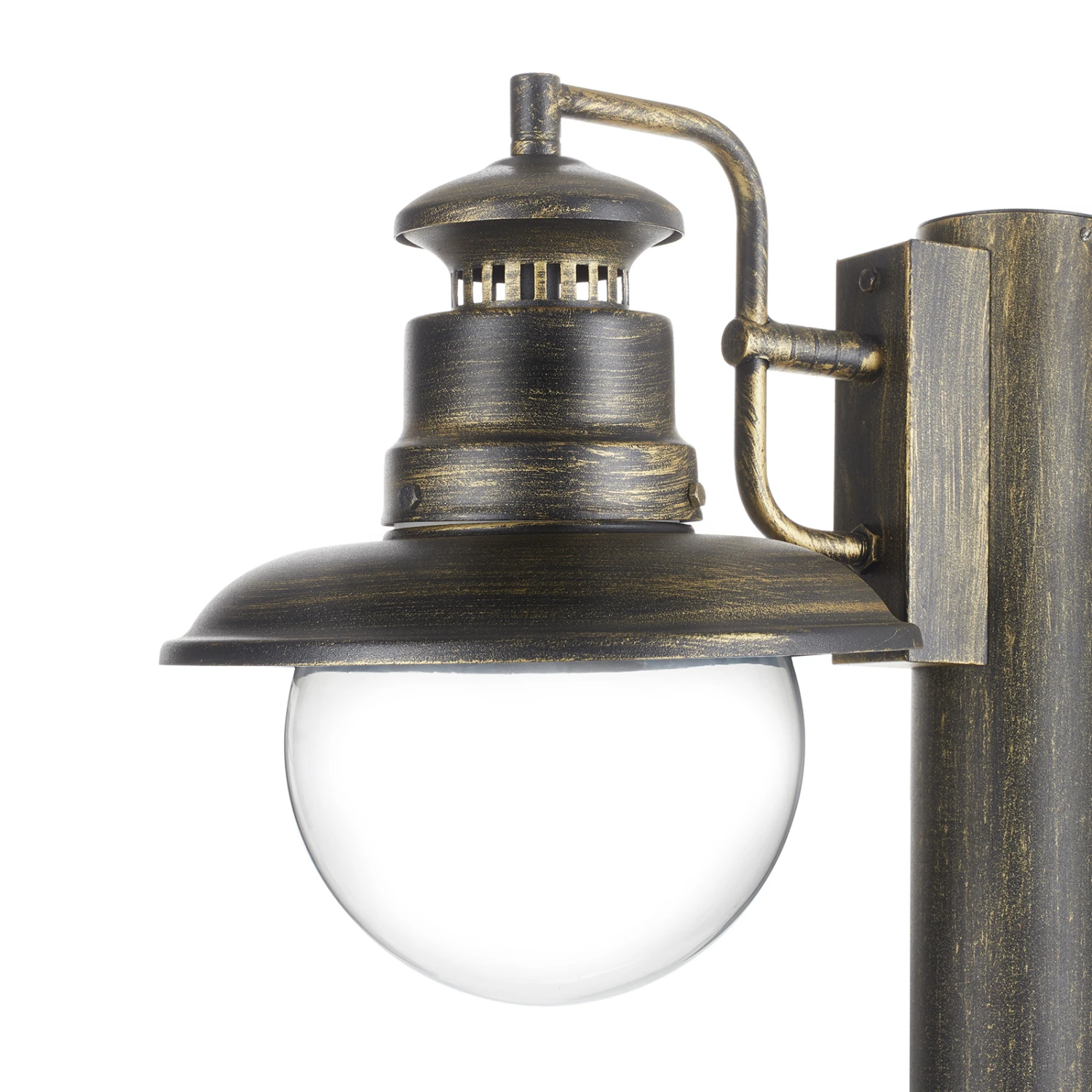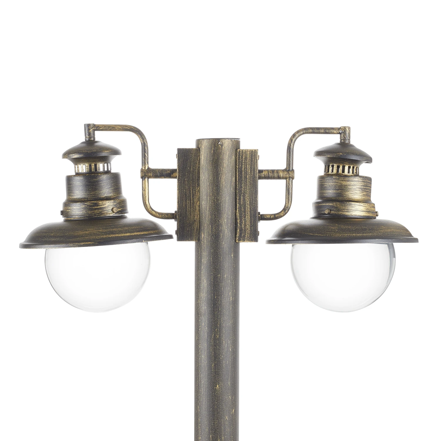 Le lampadaire à deux lampes Artu éclaire parfaitement les allées, les voies d’accès ou les jardins, car la lumière des ampoules (ampoules à incandescence ordinaires de max. 60 W ou ampoules LED modernes et durables) est diffusée à travers le verre transparent des abat-jour. La journée, la finition noire dorée du métal et les abat-jour en verre transparent font de ce luminaire un bel accessoire de décoration extérieure.